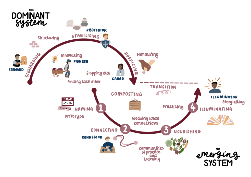 And then, we have the hospice workers – a role that can feel slightly uncomfortable but is deeply necessary. These are the people who help aspects of the old system die well. Not everything in the dominant paradigm is bad; but some parts no longer serve us. Systemic hospice workers bring compassion and clarity to this process. They might lead the transition away from a leisure centre that no longer meets the community’s needs; or help a long-standing programme find a dignified end while celebrating what it contributed.
