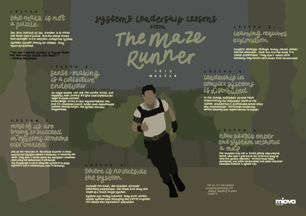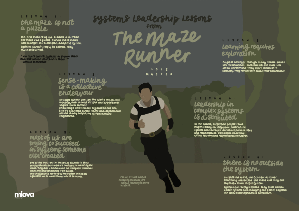 The Gladers survive because they experiment, share information, challenge assumptions and adapt as they learn more about the system around them. They create space for exploration, build structures for collective thinking and distribute leadership. And gradually, their understanding grows.